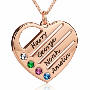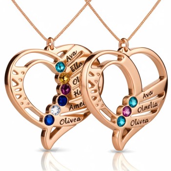 Collier Pendentif Cœur en Argent avec Pierres de Naissance