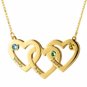 Collier Coeurs Entrelacés avec Pierres de Naissance et Plaqué Or