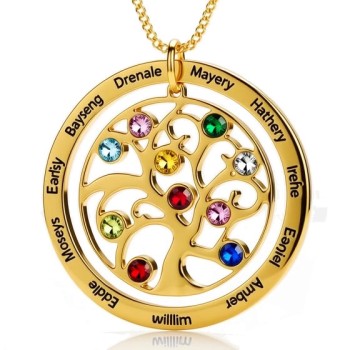 Collier Arbre de Vie et Pierres de Naissance Plaqué Or