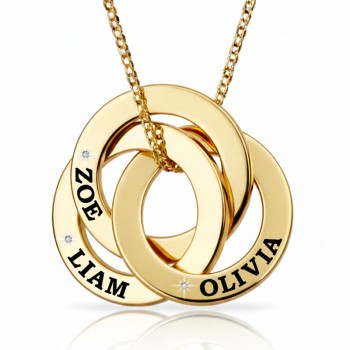 Collier russe avec 2 anneaux gravés - plaqué or rose