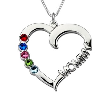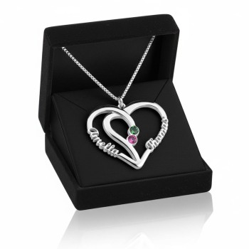 Collier Pendentif Cœur en Argent avec Pierres de Naissance