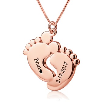 Collier Pieds de Bébé Personnalisés avec Pierre de Naissance Plaqué Or Rose