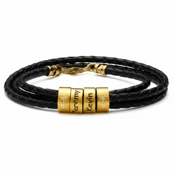Des détails élégants confèrent à notre Bracelet Homme en Cuir Tressé avec Petites Perles Personnalisées en Argent une grande attractivité visuelle. Le bracelet souple en cuir tressé est disponible en noir ou marron, et vous pouvez personnaliser ce bracelet avec un maximum de sept perles, chacune contenant une inscription qui lui est propre. Un fermoir solide assure un ajustement confortable et sécurisé.